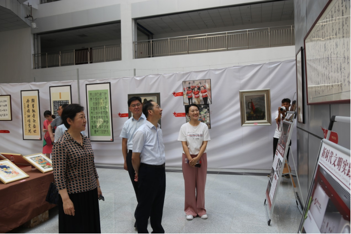 洪家友一行还考察了教育系凤画大师工作室、凤阳花鼓大师工作室和研学、智慧、游戏、仿真等实训室,参观了教育系系部文化走廊、艺术系师生书画展,对学院传承和发扬非物质文化遗产所做的工作给予了充分肯定,对艺术系师生展出的书画、设计作品表示赞赏。(图:张如清 文:周明月)