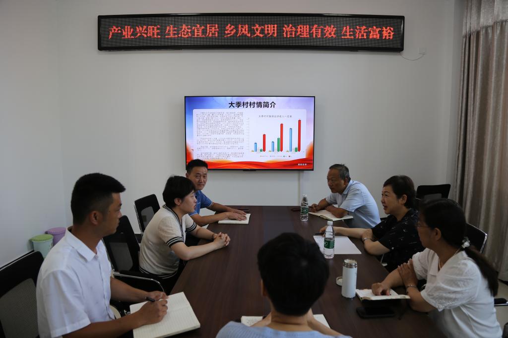 随后,张志华在大季村主持召开乡村振兴工作推进调度座谈会。史平忠汇报了大季村乡村振兴、相关项目推进情况及工作中遇到的困难和下一步打算。刘涛、纪妍分别就大季村乡村振兴工作提出要求。