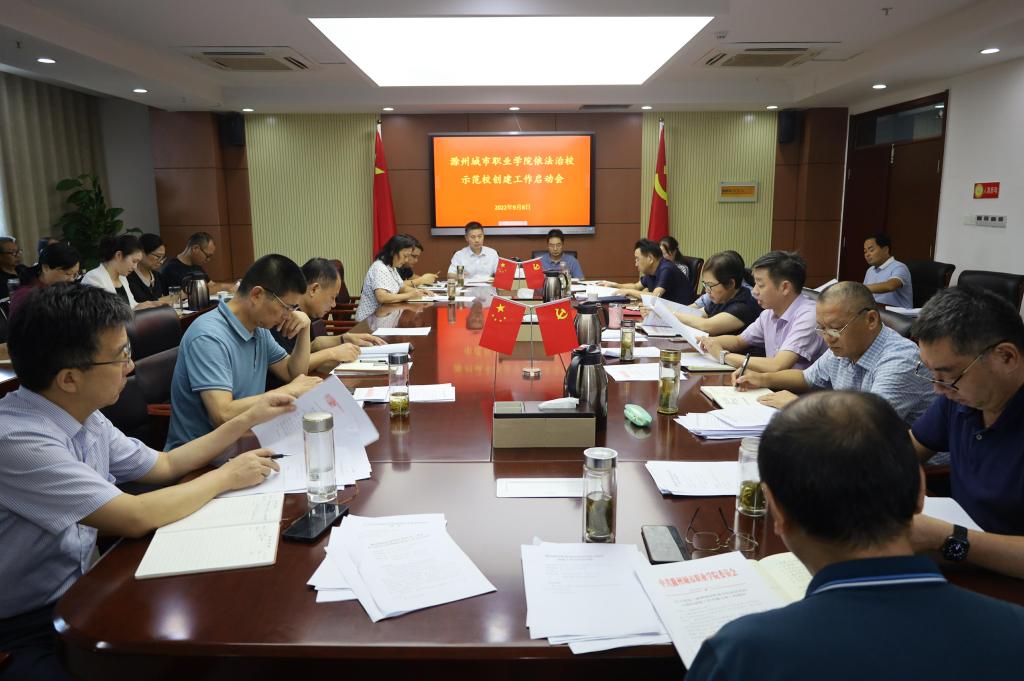 9月8日下午,学校依法治校示范校创建工作启动会在图文中心第四会议室召开。党委书记张志华出席会议并讲话,党委副书记、校长汪上主持会议,校领导班子成员及各部门负责人、教学院部主要负责人参加会议。