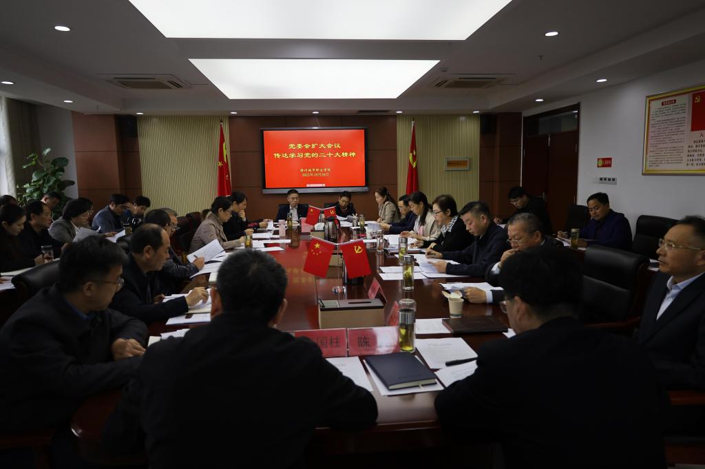 10月26日上午,党委书记张志华主持召开党委扩大会议,传达学习党的二十大和二十届一中全会、十九届七中全会精神,安排部署学校学习宣传贯彻工作。会议强调,要更加紧密地团结在以习近平同志为核心的党中央周围,高举中国特色社会主义伟大旗帜,衷心拥护“两个确立”、忠诚践行“两个维护”、增强“四个意识”、坚定“四个自信”,迅速在全校掀起学习宣传贯彻党的二十大精神热潮,踔厉奋发、勇毅前行,以“走在前列、争创一流”的志气和决心,奋力建设安徽省地方技能型高水平大学。