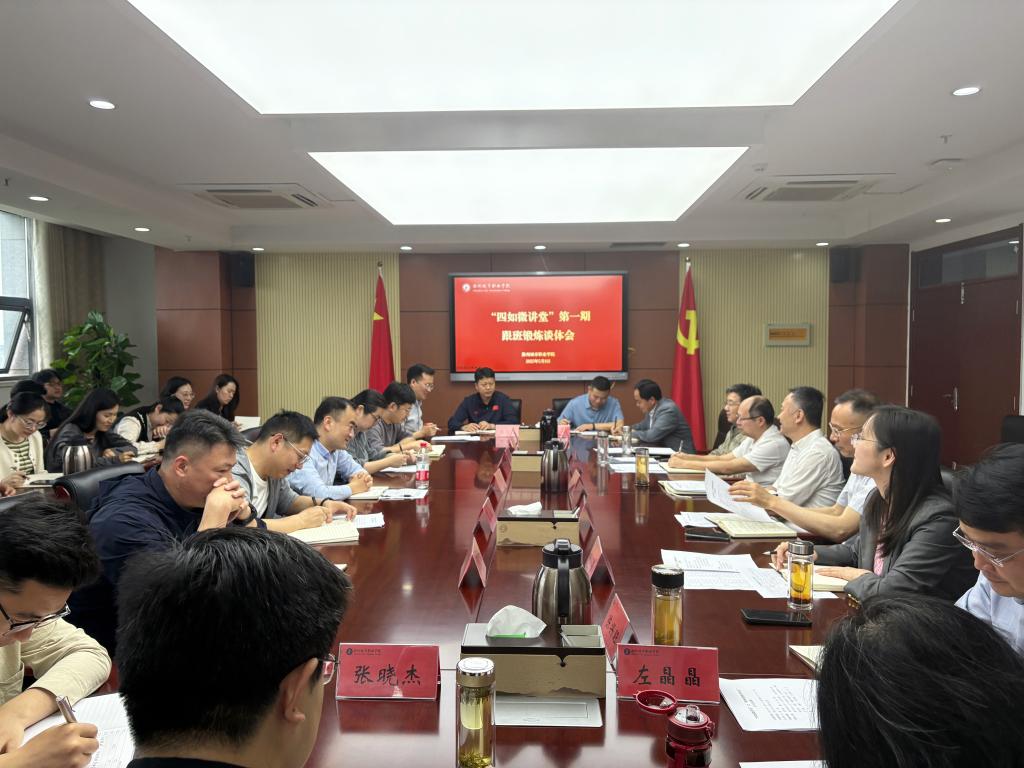 5月8日上午,学校召开“四如微讲堂”第一期跟班锻炼谈体会座谈会。校党委书记王燕永,党委委员、副校长曹士东,党委委员、纪委书记池鹏出席会议,各教学院(部)主要负责人、干部代表、教师代表及跟班锻炼同志参加会议。会议由党委委员、组织人事处处长杨莹主持。