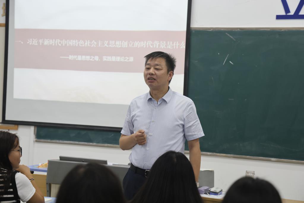 汪上在仁心楼听取了王永康老师讲授的《习近平新时代中国特色社会主义思想概论》课程。他在课间与学生亲切交流,希望大家积极适应从高中到大学的角色转变,提升自我管理、自主学习和科学规划的能力,做到勤学、明理、慎思、笃行,并希望同学们在大学期间珍惜时光、锤炼本领、学有所成,以实际行动奉献社会、实现价值。