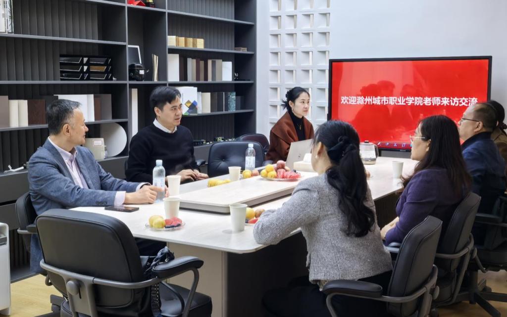 参观结束后,校企双方举行座谈。王燕永书记介绍了学校近年来在专业建设、人才培养模式改革、校企合作平台构建等方面取得的进展,并围绕滁州地区产业规划、产品设计行业趋势与工业设计标准更新等议题,与企业代表展开深入探讨。双方在人才培养、实习实训基地共建、技术协同与成果转化等方面达成初步合作意向。