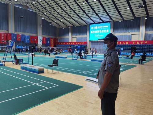 赛事期间,保卫处加强督查,夯实职责,积极与赛事各相关部门沟通,根据赛事要求及时调整安保力量,确保比赛安全有序进行。全体安保人员坚守岗位、战高温、保安全,克服了时间紧、任务重、强度大、标准高等工作压力,从早至晚连续工作15小时左右,以饱满的精神风貌、热情的服务态度、严谨的工作作风,完成车辆引导、入馆安检、内场巡查、秩序维护、安防监控、应急保障等安保工作,确保比赛场馆及校园的安全稳定。