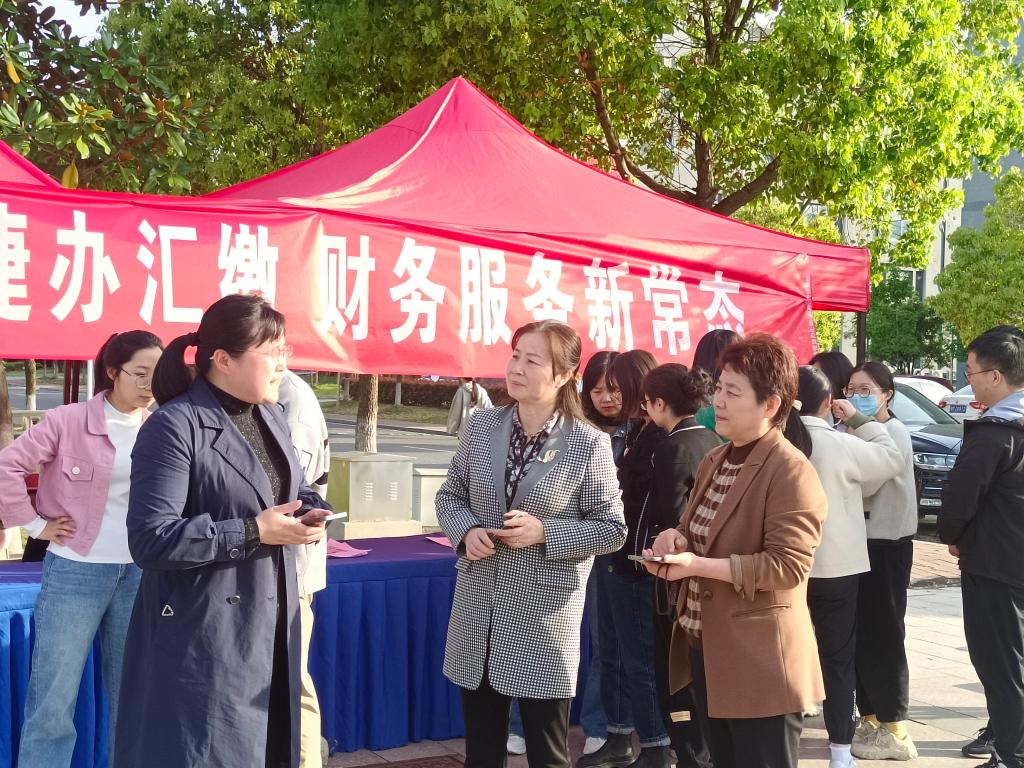 4月17-18日,财务处在食堂南入口处人流密集的地方设置临时汇算清缴服务点,安排专人面对面进行个税宣传及现场操作指导。校党委书记王燕永,党委副书记、校长汪上,党委委员、副校长吴惠珍亲临活动现场,充分肯定这是一次有意义的活动,并指出个人所得税汇算清缴工作是保障纳税人合法权益的重要任务,与教职工个人利益息息相关,工作时效性强,要求财务部门要高度重视,把握进度,运用多种方式,加强宣传引导,服务好教职工,要将用心、用情为全校师生提供暖心、贴心的财务服务坚持下去。