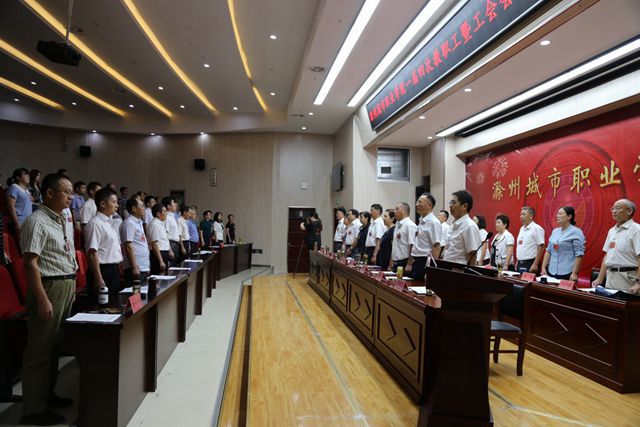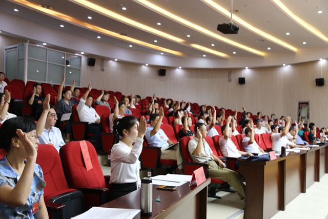 9月12日上午8时,大会第一次全体会议在雄壮的国歌声中正式拉开帷幕!米德成主持会议。张志华代表学院向大会作了题为《坚持立德树人,聚焦双高目标,奋力建设技能型高水平新城院》的工作报告。报告全面总结了学院2019年以来工作。报告指出,2019年,学院在市委市政府和学院党委的正确领导下,以建设技能型高水平大学为目标,坚持立德树人,强化改革创新,深化内涵建设,深入实施“四个年”活动,着力推进依法治校、质量立校、特色兴校,广大师生在各类赛事和学院各项工作中均取得了显著成绩,学院呈现出生机勃勃、蒸蒸日上的良好发展态势。