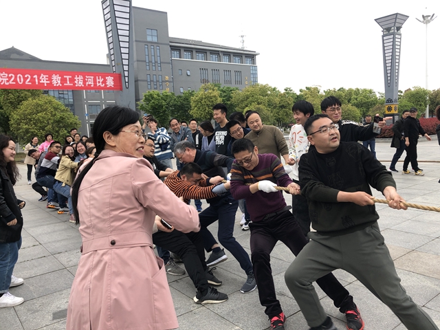 4月21日下午,我院工会在图文中心南广场举行了2021年“迎五一”教职工拔河比赛,来自八个分工会近200人参加了比赛。院领导张志华、施向阳、胡墨农等参加活动。此次拔河比赛旨在增强教职工的集体荣誉感和凝聚力,进一步激发教职工团结奋斗的团队精神。