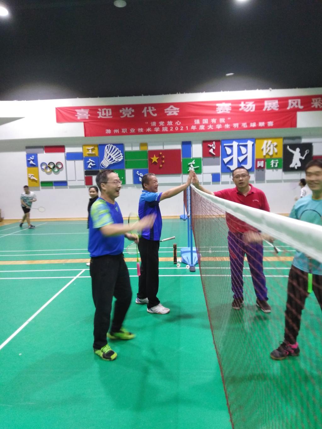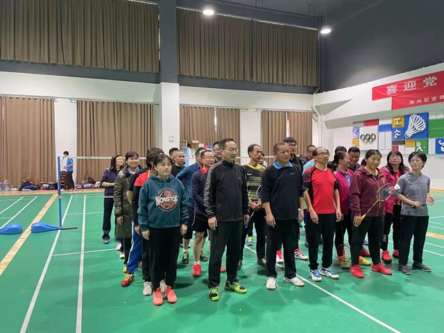 2021年11月28日下午3:50,滁州城市职业学院工会与滁州职业技术学院工会联办的教职工羽毛球友谊赛,在滁州职业技术学院体育馆举行。