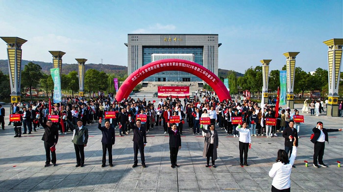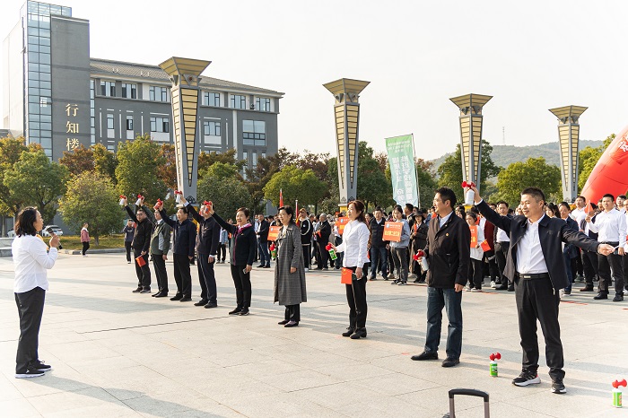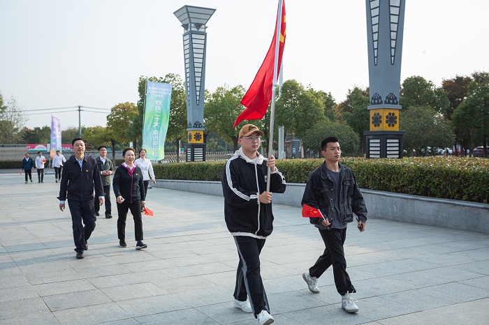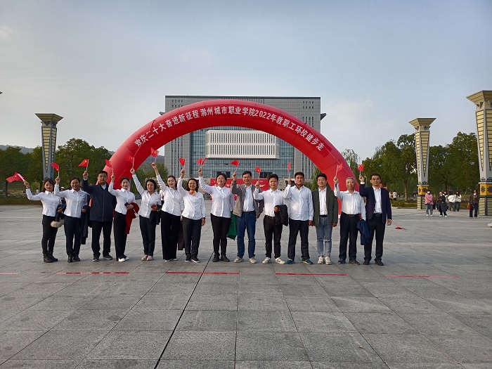 在举国上下学习贯彻党的二十大精神之际,11月3日下午,我校工会隆重举行2022年“欢庆二十大,奋进新征程”教职工统一着装环校健步走活动。健步走仪式在图文中心南广场举行,仪式由工会副主席陈之娟主持,校党委书记张志华,党委副书记、校长汪上等校领导班子全体成员亲临仪式现场并为活动鸣枪发令,全校近500名工会会员参加了活动。