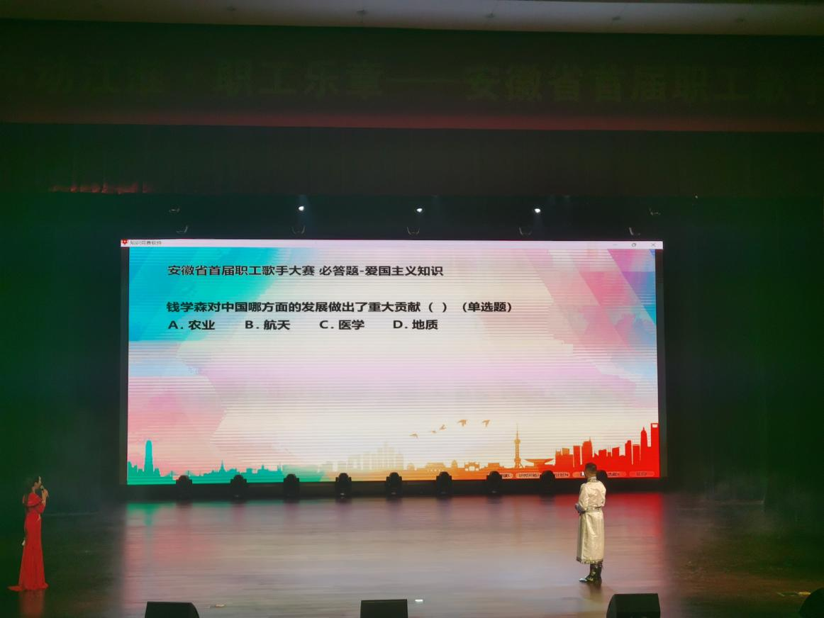 10月17日,由安徽省职工文化体育协会主办的“安徽省首届职工歌手大赛”活动安排中,我校郭江老师荣获“职工喜爱歌手”称号!