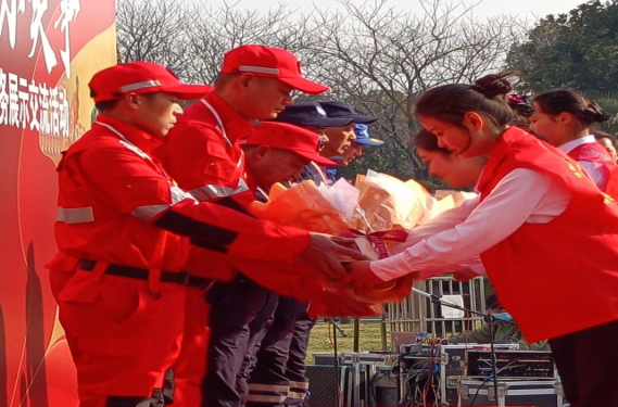 随后,学院的8名礼仪队志愿者为援助土耳其地震救援队代表队员献上美丽的鲜花,同时对他们不远万里“逆行而上”,救人于危难中的志愿精神,献上一份崇高敬意。