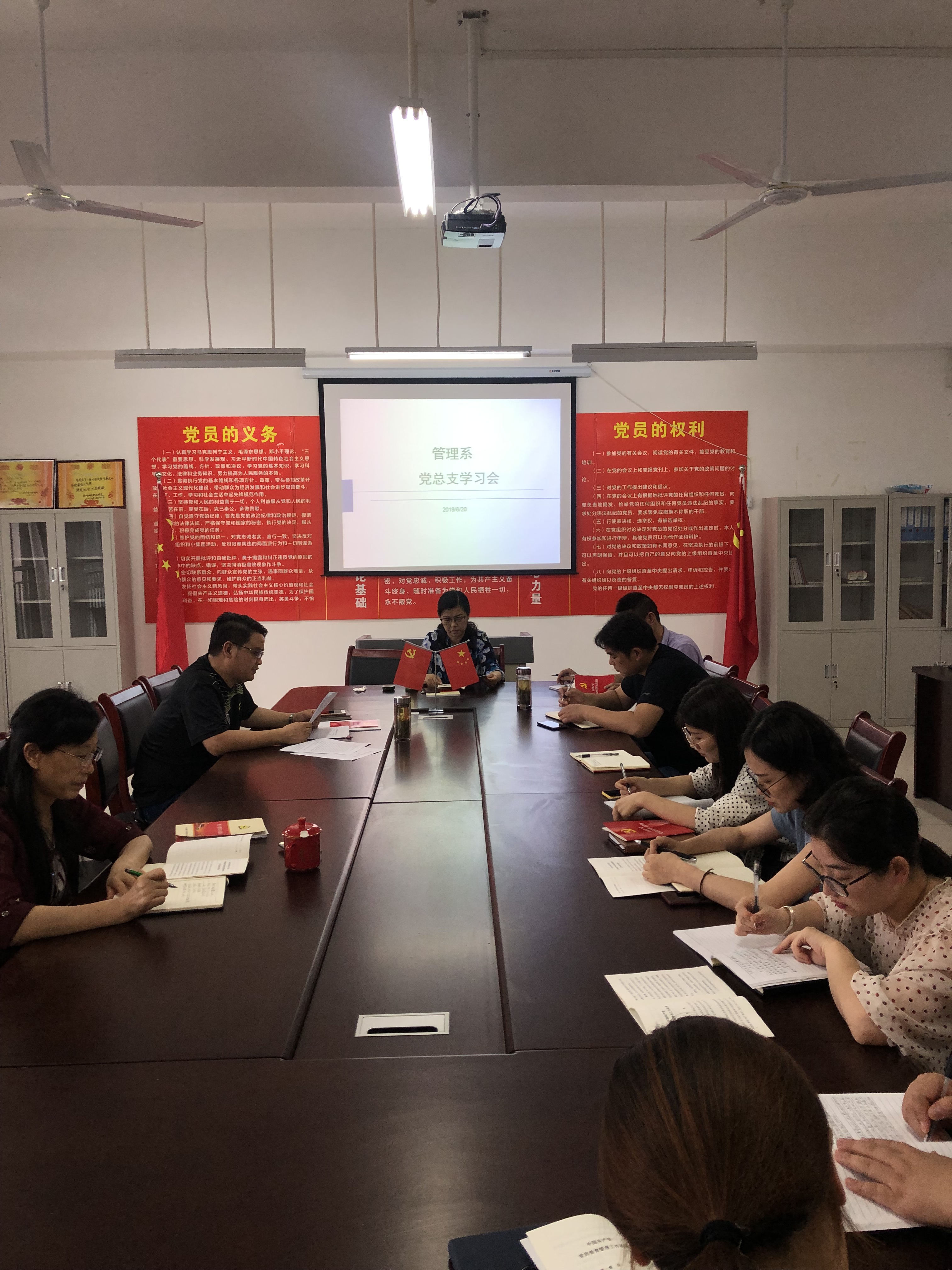 6月20日下午,管理系于系会议室开展了党组织学习会,我系全体党员参加会议,院党委副书记牛春雨参加学习活动,系党总支副书记陈兴旺主持会议。