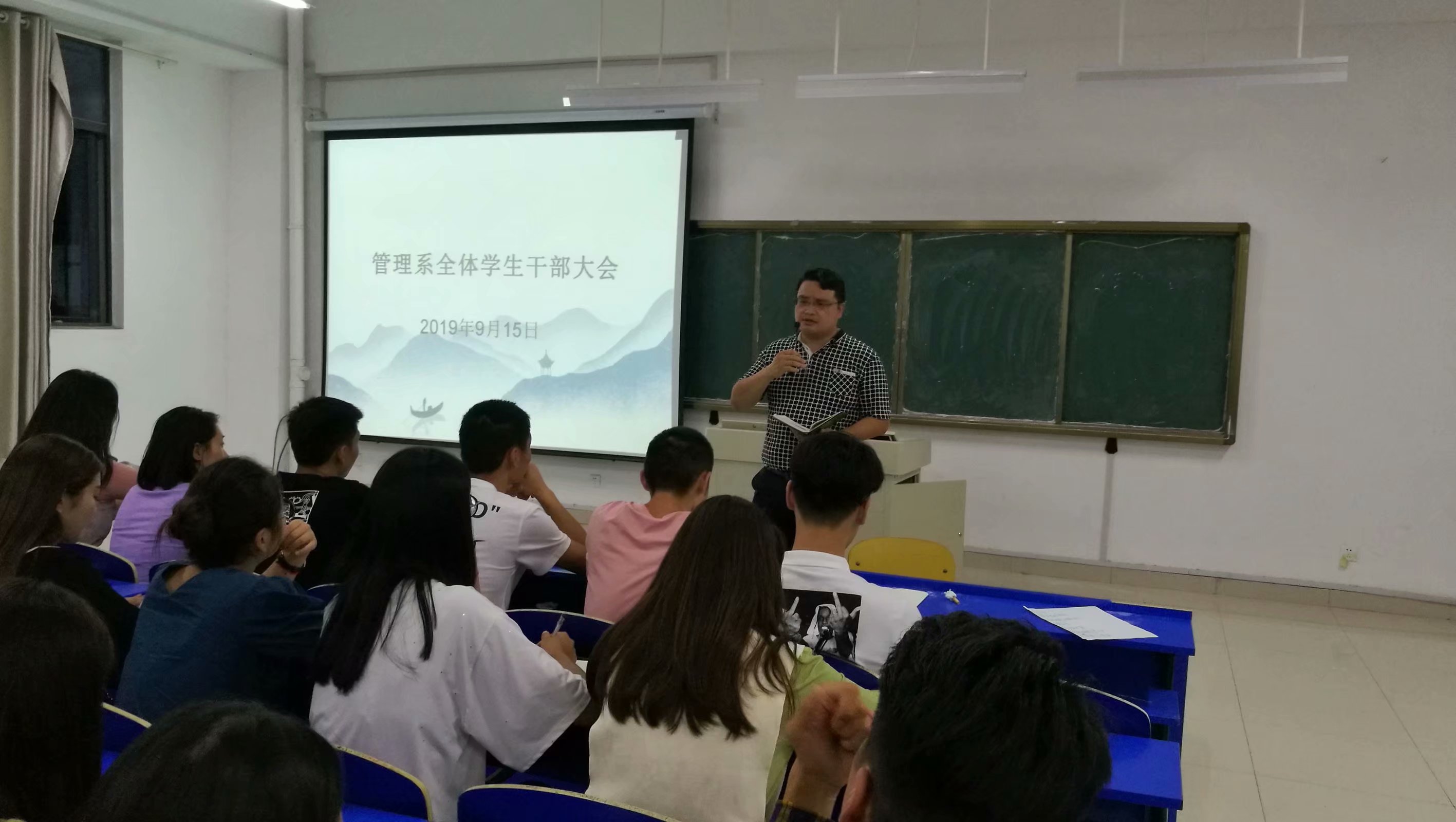 为深入了解学生干部工作情况,管理系于9月15日晚在C1北1104公共教室召开了学生干部大会,本次会议由党总支副书记陈兴旺出席并主持会议。