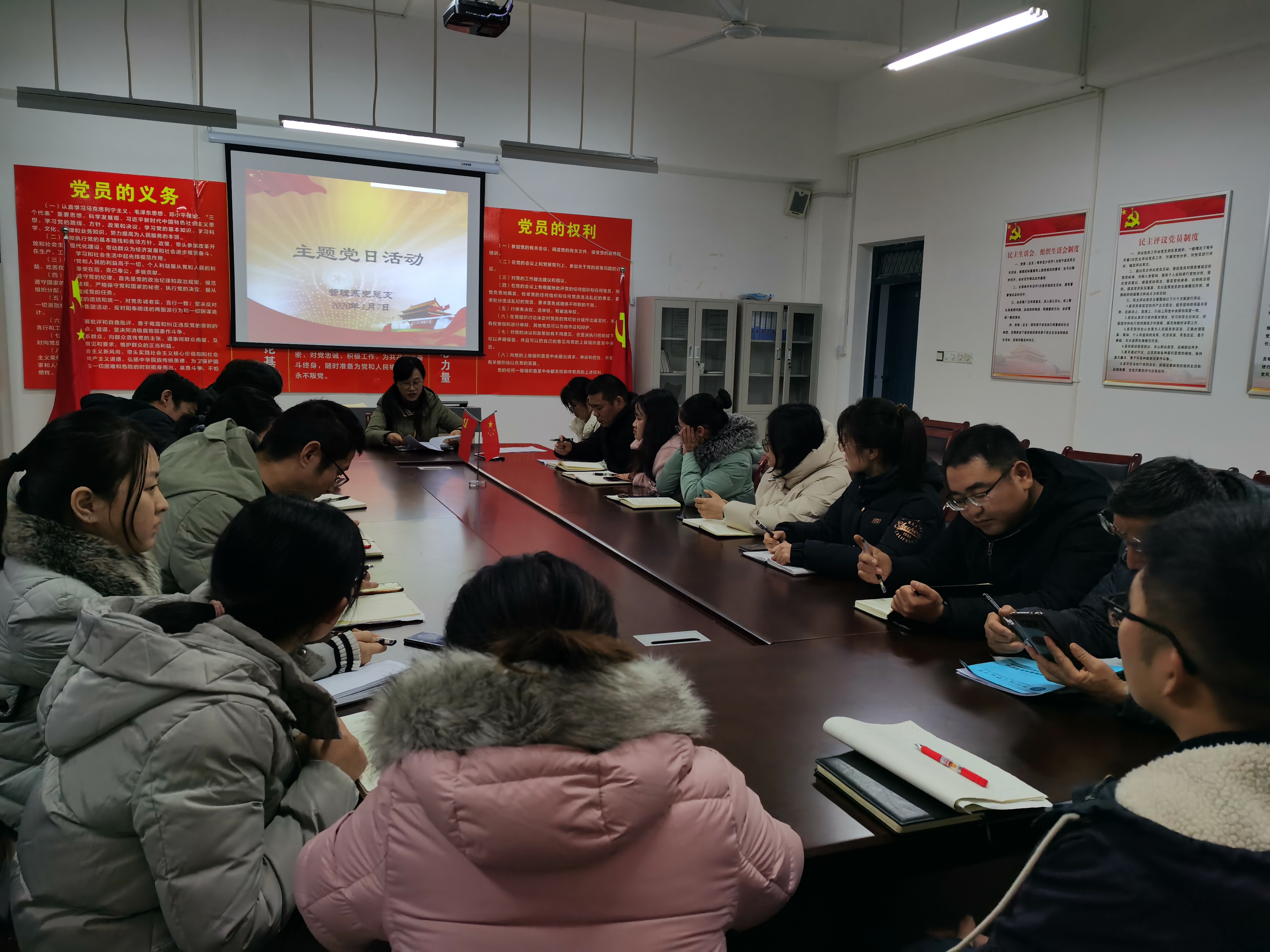2020年1月7日下午,管理系党总支于党员活动室召开主题党日活动,会议由陈素霞主持。