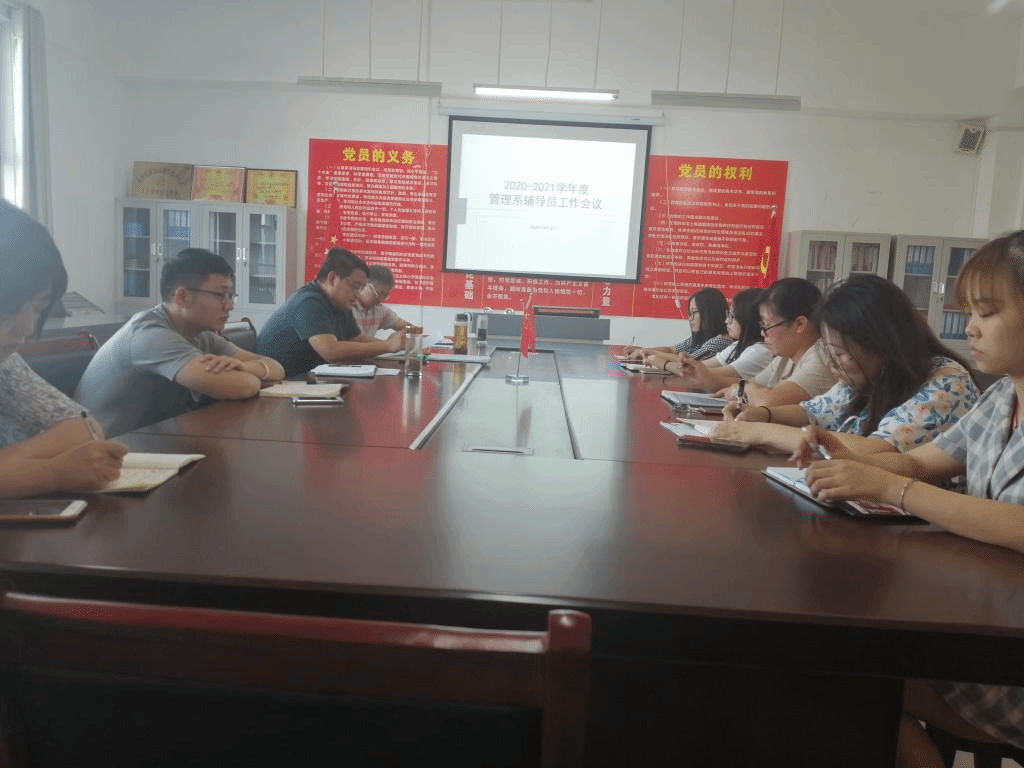 在疫情特殊时期,为进一步做好学生管理工作,管理系于5月8日下午在系会议室召开在校班级辅导员(班主任)工作会议,系党总支书记陈兴旺、学管秘书唐静、团总支书记杨静怡以及在校班级辅导员(班主任)参加会议,会议由陈兴旺主持。