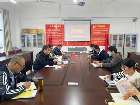 2021年5月19日下午,管理系党总支在系党员活动室开展党史学习教育,会议由管理系党总支书记陈兴旺主持,全体党员参加学习。