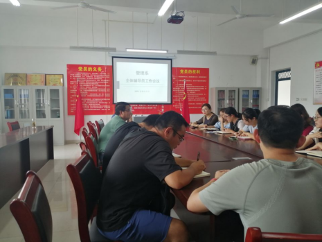 为了保证学期开学学生管理工作正常进行,管理系于9月1日下午在系会议室召开新学期全体辅导员(班主任)会议,会议由系党总支书记陈兴旺主持,学管秘书唐静、团总支书记杨静怡以及在校班级辅导员(班主任)参加会议。