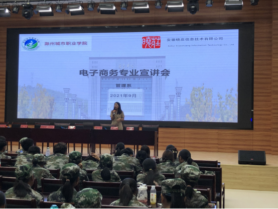 9月24日下午4:40,管理系在学院第二报告厅举行电子商务专业专业认知宣讲会,校企合作单位安徽晓庄信息科技有限公司代表陶雪萍、张慧、谢泽伟、宋康康和电子商务专业的辅导员周旋、杨蕊瑞、胡海敏出席会议,21级电子商务专业的113名学生参加宣讲会,管理系党总支书记、电子商务专业带头人陈兴旺主持会议。