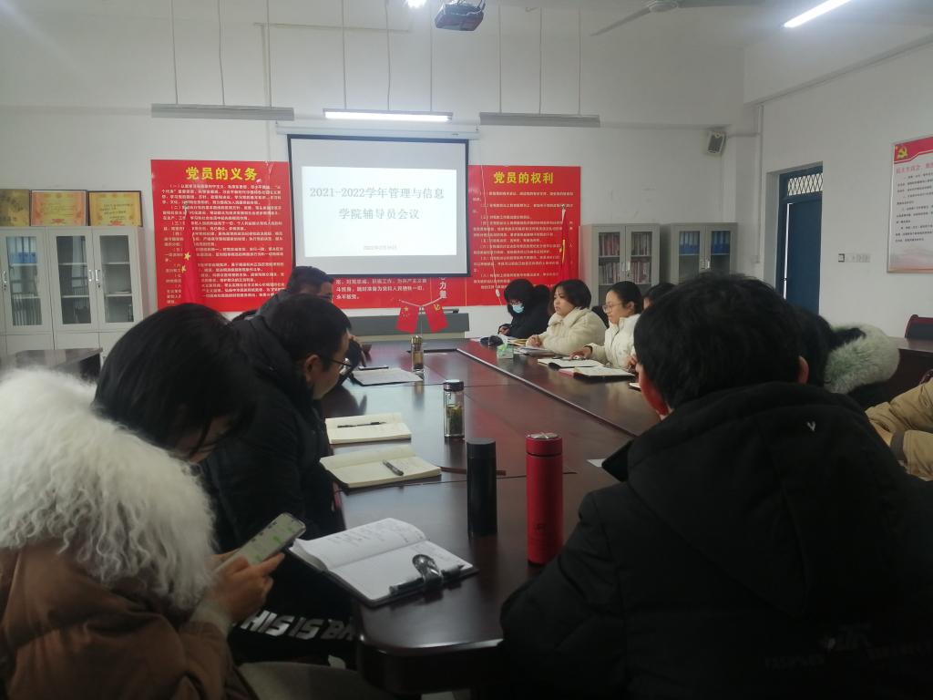 在疫情特殊时期,为进一步做好学生管理工作,管理与信息学院于2月16日下午在院会议室召开在校班级辅导员(班主任)工作会议,院党总支书记陈兴旺、学管秘书唐静、团总支书记杨静怡以及在校班级辅导员(班主任)参加会议,会议由陈兴旺主持。