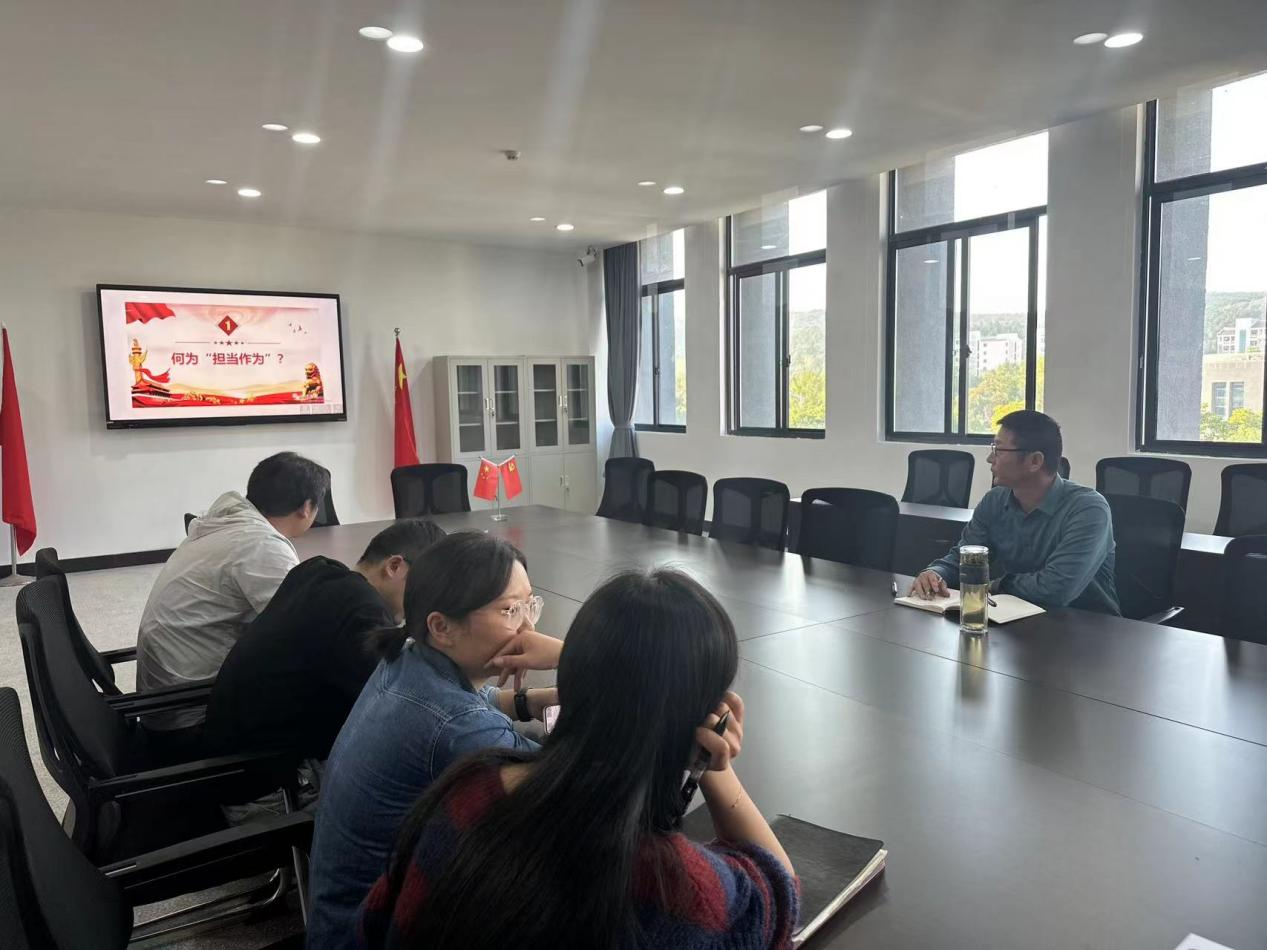 韩峰主要从何为“担当作为”、为何强调担当作为、新征程如何担当作为这三个方面开展论述。他强调,敢于担当是中国共产党人鲜明的政治品格,中国共产党自诞生之日起就自觉把对国家、对民族、对人民的责任担当写在自己的旗帜上。习近平总书记在党的二十大报告中指出,加强干部斗争精神和斗争本领养成,着力增强防风险、迎挑战、抗打压能力,带头担当作为,做到平常时候看得出来、关键时刻站得出来、危难关头豁得出来。全体党员干部要扛起担当、不辱使命,以永不懈怠的精神状态和一往无前的奋斗姿态,在奋力谱写中国式现代化新篇章的历史征途中留下浓墨重彩的印记!