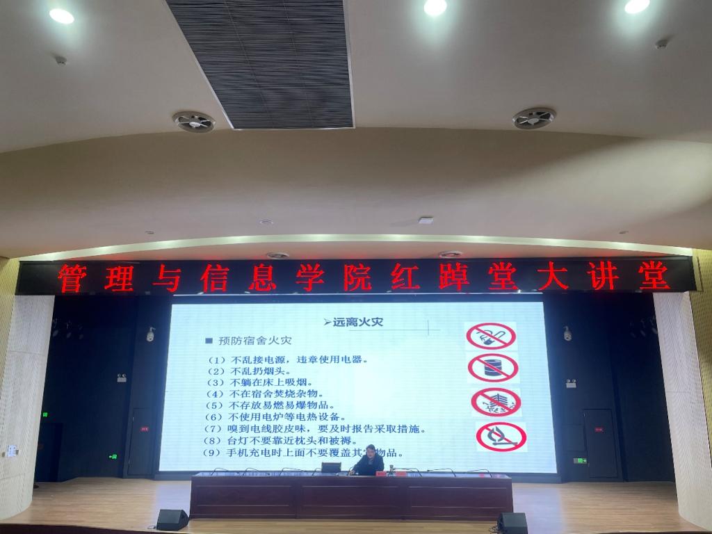 为持续深化学院安全教育,不断提升学生安全意识和能力,全力保障学生安全健康成长,11月10日下午管理与信息学院党总支书记陈兴旺为学院青年学子作题为《铸牢安全防范意识 共建平安美丽校园》专题讲座。