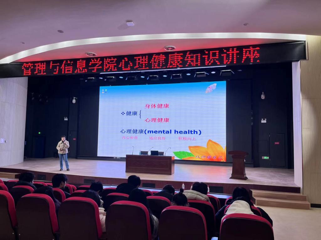 为进一步普及心理健康知识,关注学生的心灵成长,帮助学生建立良好的心态,12月15日下午,管理与信息学院邀请学校心理健康教育中心专家程萍作《健康心理 幸福人生》的心理健康教育知识讲座。学院辅导员、各班心理委员、学生代表300余人参加。