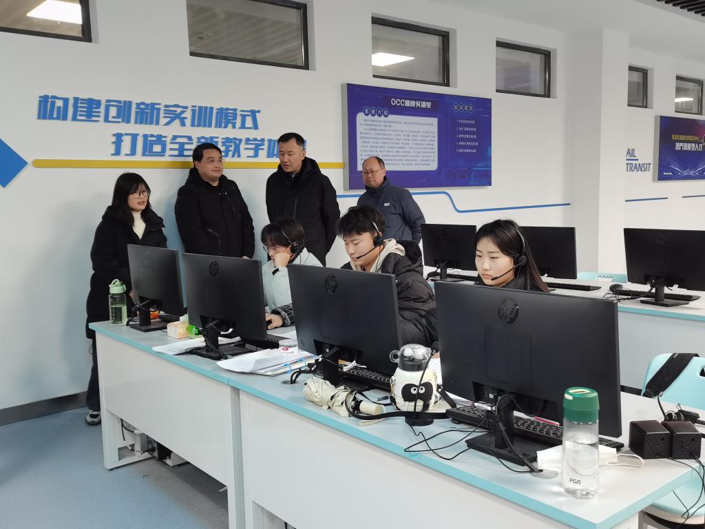 王燕永书记一行首先考察了学院办学场所设施及实验实训建设。实地察看了轨道交通虚拟仿真实训室、电子商务产业学院、高铁模拟仓等实验实训场所,并慰问了备战安徽省职业院校技能大赛集训师生,为即将参赛的师生加油鼓劲。王燕永肯定和赞扬了师生团队的辛勤付出,勉励师生要坚定信心,磨练意志,锤炼心理素质,规范操作要领,提升实战技能,力争取得好成绩。