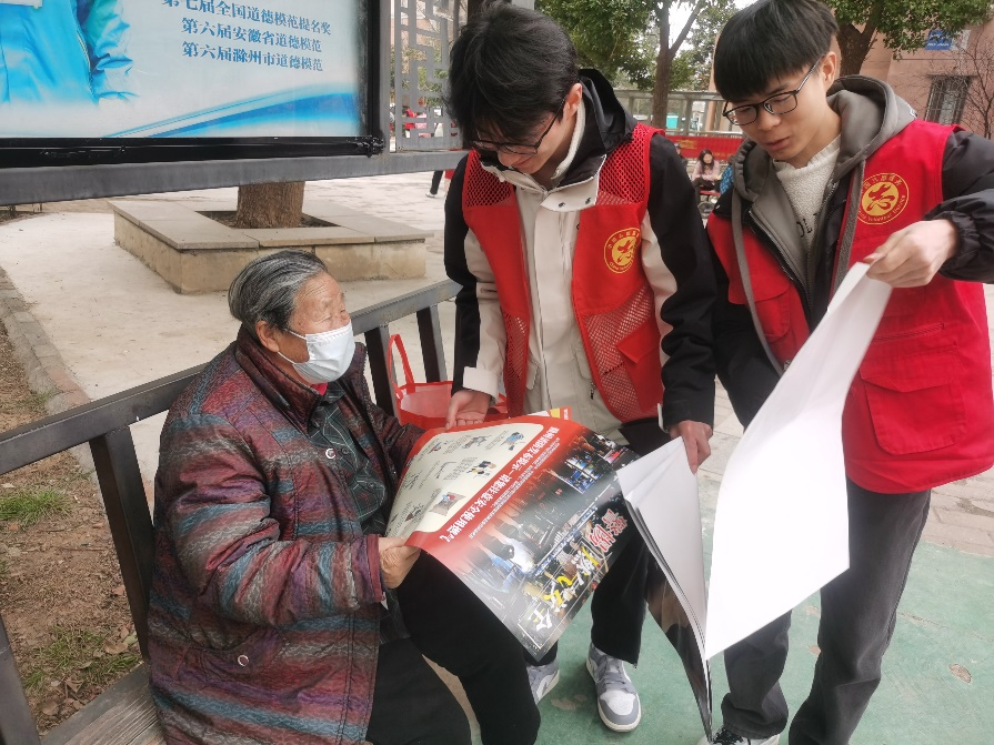 为进一步弘扬雷锋精神,提高师生志愿服务意识,普及消防安全知识,增强居民的自救能力,3月9日下午,管理与信息学院“红踔堂”志愿服务队在党员教师带领下,41名学生志愿者前往滁州市丰乐社区开展消防安全知识宣传志愿服务活动。