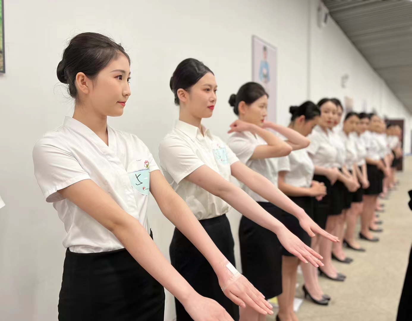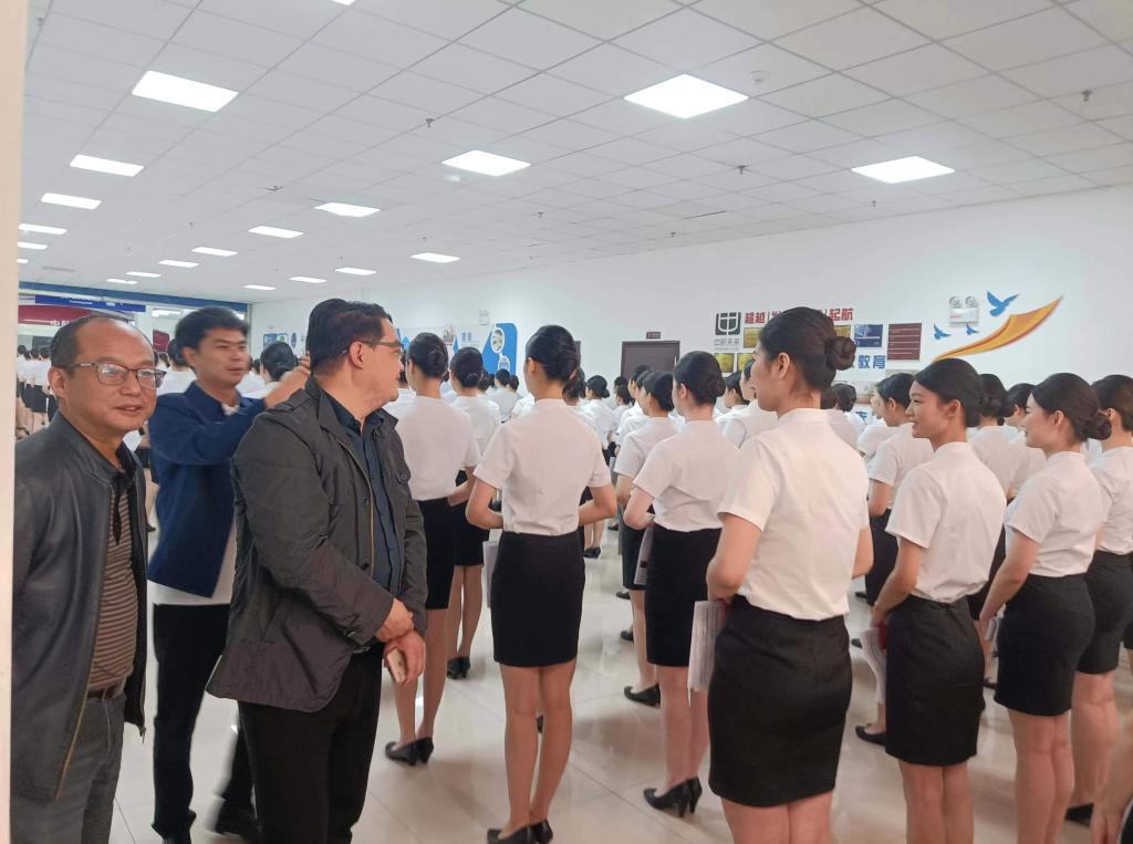 本次长龙航空乘务员面试通过海选、初检、初试、复试、四个环节进行。我院2022级空中乘务专业的同学们精神抖擞、面带微笑、翘首以盼。在长龙航空面试官面前展现空乘专业最佳的职业风采。