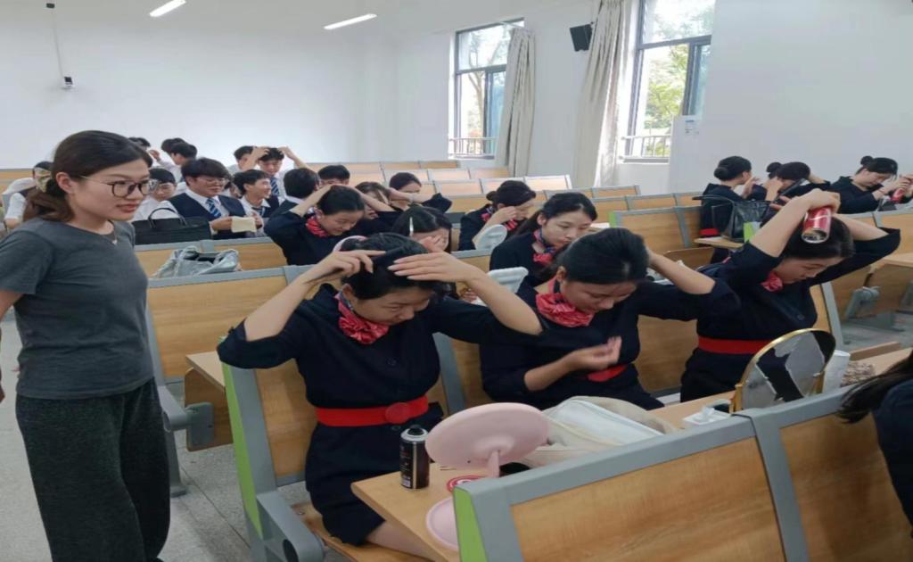 6月19日,管理与信息学院举办首届“技能比拼展风采,妆点魅力示形象”空乘职业形象化妆比赛,23空乘专业全体学生参加比赛。交通运输系主任邢桂先,空乘专业负责人邵明莉、空乘专业副主任潘莲莲等专业教师担任评委。