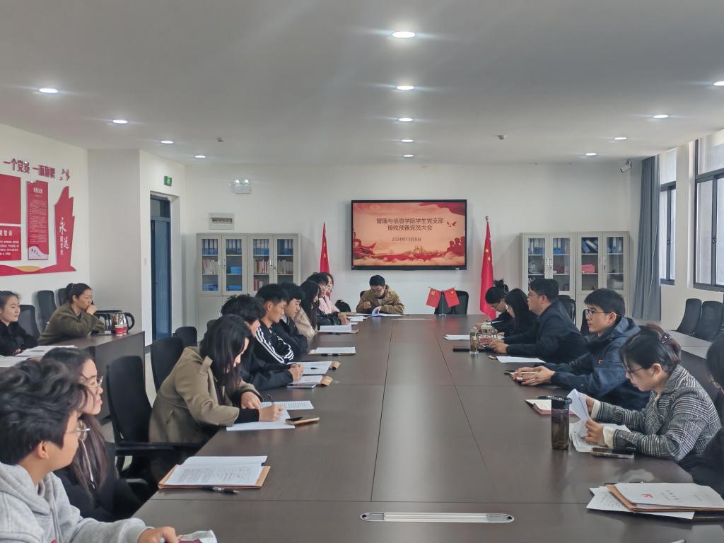 为进一步加强学生党组织建设,壮大学生党支部力量,11月8日下午,管理与信息学院学生党支部在润德楼301会议室召开接收预备党员大会,管理与信息学院党总支书记陈兴旺主持本次会议,学生党支部全体党员参加会议。