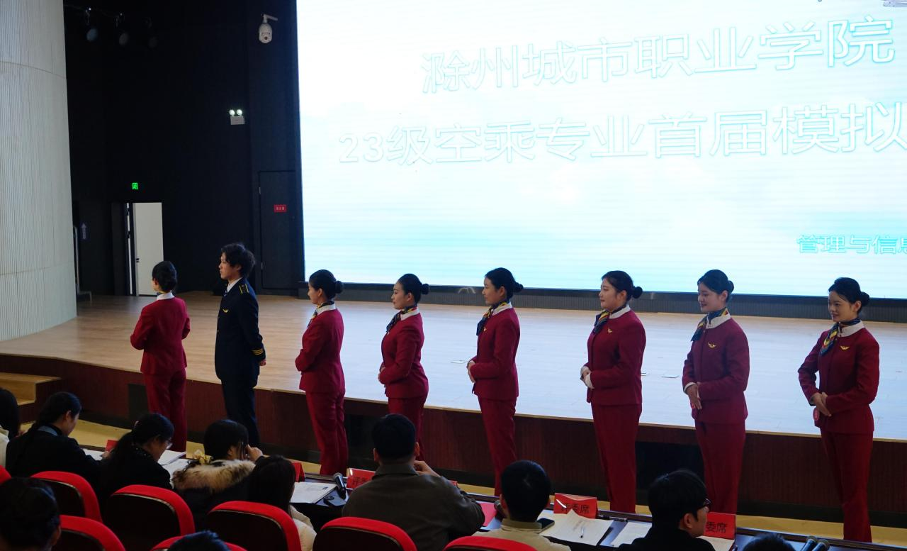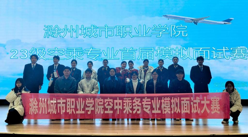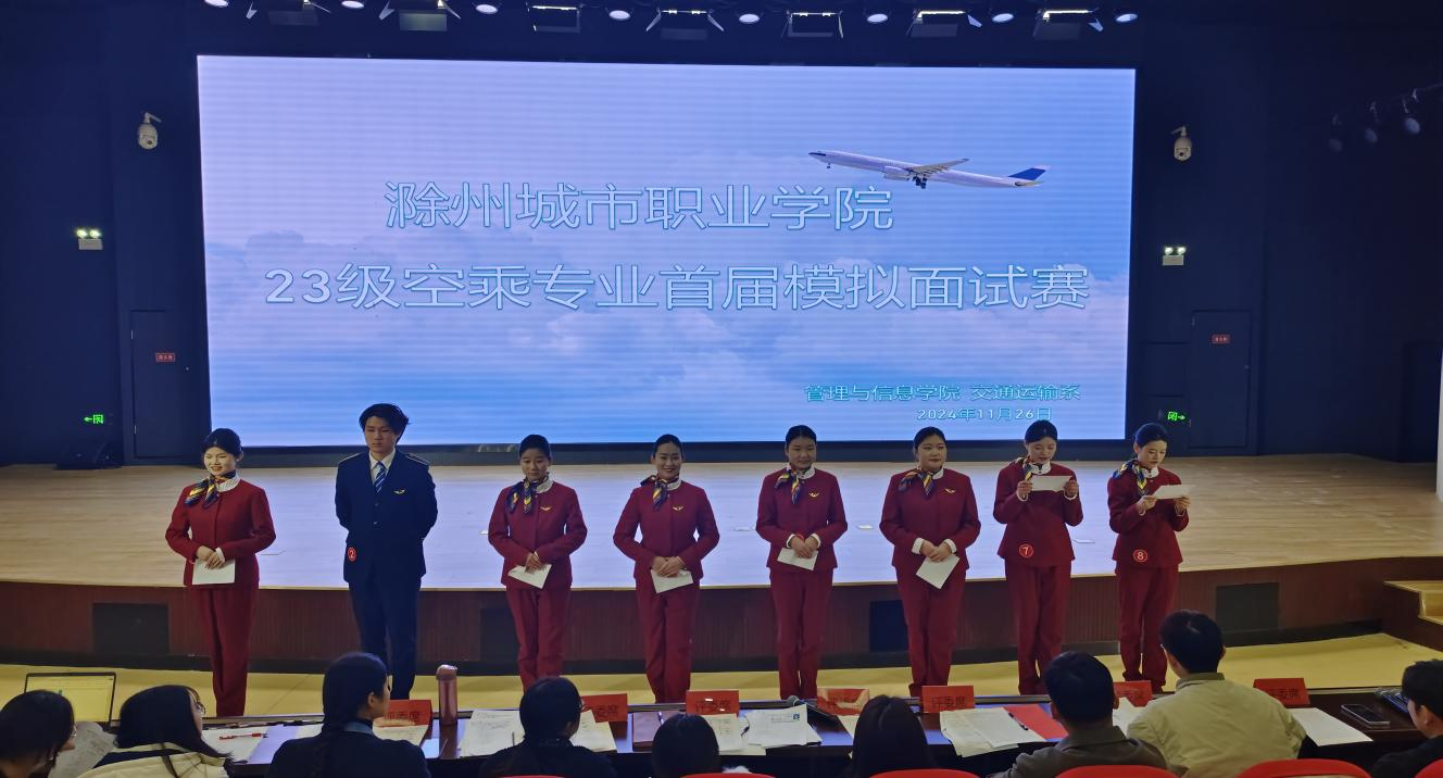 2024 年 11 月 26 日上午,滁州城市职业学院管理与信息学院首届空中乘务专业模拟面试比赛于学院4 楼报告厅精彩上演。