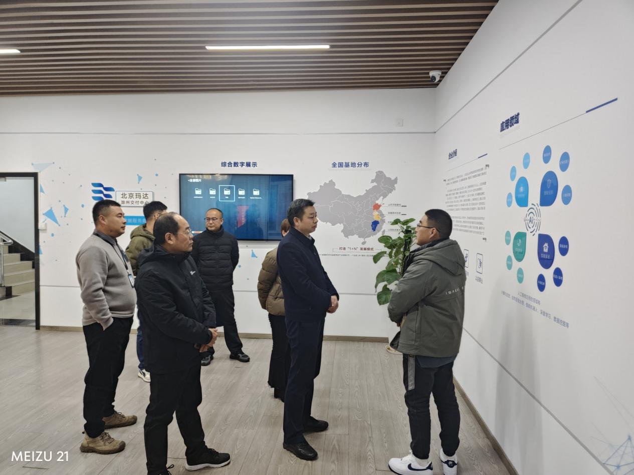 接着,走访团队前往滁州明晟智能科技有限公司。在董事长秦家明的带领下,参观了企业的文化展示区,了解了企业在多模态大模型开发领域的创新成果与应用案例,特别是在智能无人机、人形机器人、农用机器人、工业互联网等领域的项目实践经验和技术突破。