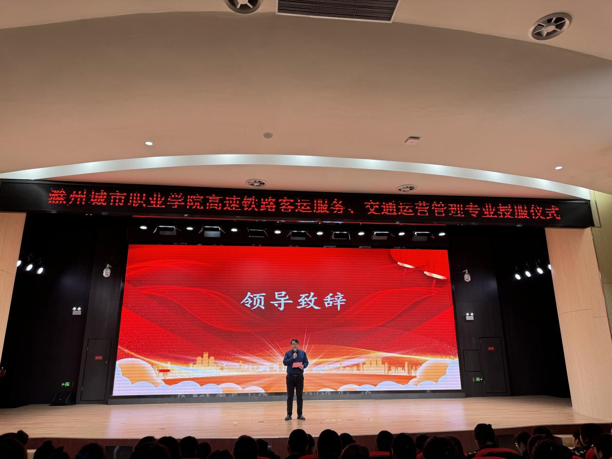 活动伊始,陈兴旺书记上台致辞。陈书记深入阐述了举办授服仪式对于学生成长的重要意义,殷切期望同学们牢记使命,凭借扎实的专业知识投身城轨行业,以饱满的热情开启职业生涯新篇。