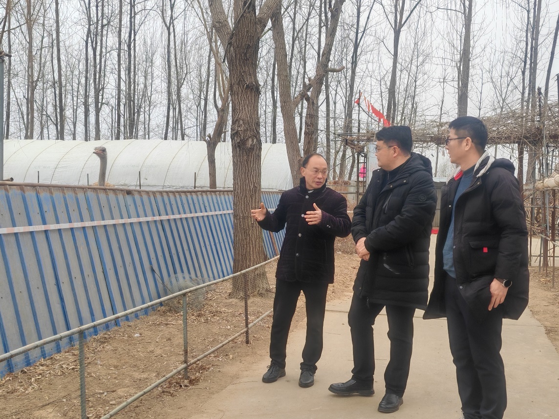 随后,陈兴旺一行实地考察了临淮关镇兴云家庭农场,深入了解了兴云家庭农场是一家专注于鸵鸟养殖并围绕其构建起全面而深入的长产业链条的农场。在传统的鸵鸟业务之外,还包括通过新媒体进行鸵鸟科普讲解、鸵鸟蛋工艺品的宣传等。在调研中,双方就养殖知识的科普传播以及直播运营模式等相关事宜进行了深入的商讨。
