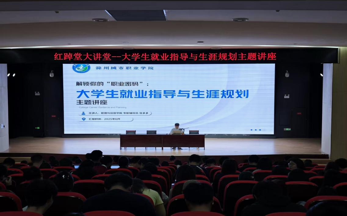 为帮助大学生明晰就业形势、科学规划生涯,6月12日下午,管理与信息学院于四楼报告厅开展 “红踔堂大讲堂——大学生就业指导与生涯规划” 主题讲座,管理与信息学院专职辅导员张多多担任主讲,我院2023级、2024级二百余名学生参与,现场氛围热烈。
