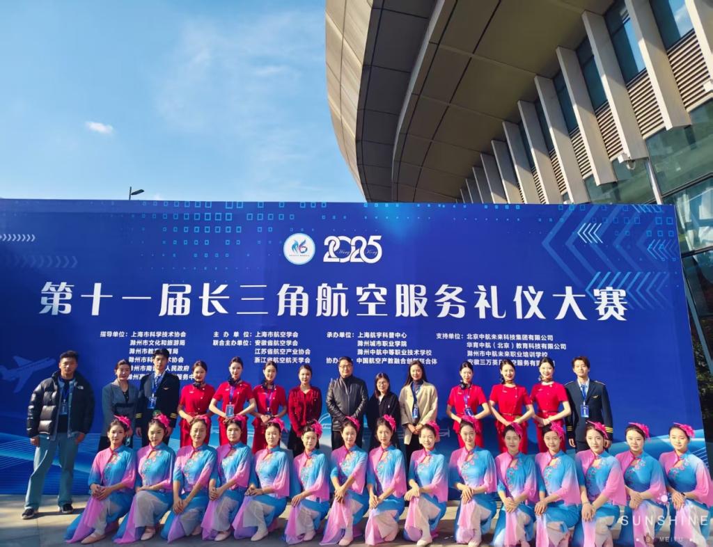 11月11日,第十一届长三角航空服务礼仪大赛在安徽滁州中航未来华东航空实训基地盛大举行。本次大赛由上海市航空学会主办,上海航宇科普中心,滁州城市职业学院承办,大赛旨在提升航空服务质量,弘扬航空文化,促进长三角地区航空院校的交流与合作。吸引了来自上海、安徽、浙江、江苏的长三角地区多家航空院校的15支精英代表队齐聚一堂,同台竞技,演绎了一场关于专业热情与优雅的空中服务盛宴。经过激烈角逐,我校空中乘务专业代表队凭借出色表现荣获团体二等奖,为学校赢得了荣誉。