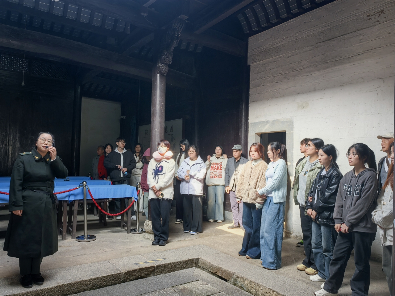 皖南地区是安徽文化旅游的核心承载地,更是导游资格考试的重点考察区域。此次实践以“文化探访 + 考点研学” 为双主线,为学生们搭建起“理论联系实际” 的桥梁。在新四军军部旧址,同学们循着历史足迹,聆听革命先辈在皖南的奋斗故事,红色文化的浸润让大家深刻理解“红色旅游” 的精神内涵 —— 不仅是景点讲解,更是红色基因的传承与传播;在宣纸文化园,从原料炮制到纸张成型的全流程观摩,让 “文房四宝” 的非遗魅力具象化,学生们亲手体验宣纸制作技艺,读懂了“一张宣纸背后的千年匠心”,也明晰了导游讲解中 “非遗文化活化传播”的关键要点。