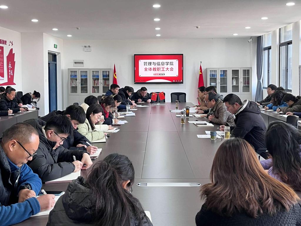 2月27日下午,管理与信息学院在润德楼301会议室召开全体教职工大会,会议由学院院长叶士舟主持。