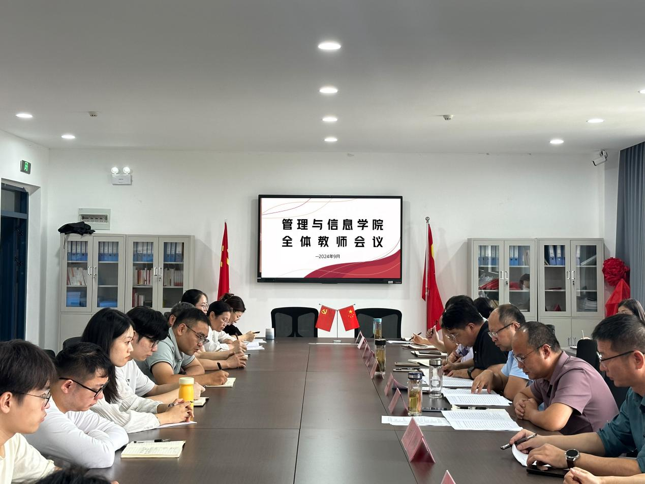 9月30日上午,管理与信息学院在润德楼召开全体教师教学会议,校党委委员、纪委书记池鹏出席会议,管理与信息学院党总支书记陈兴旺、院长叶士舟、副书记秦海娇、副院长韩峰及全体教师参加会议,会议由韩峰主持。