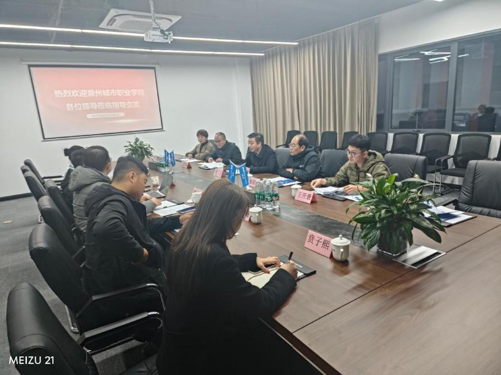 为深入贯彻党的二十大精神,积极响应教育部“访企拓岗促就业”专项行动号召,深化产教融合,推动高校人才培养与企业需求的精准对接,2024年12月12日,滁州城市职业学院党委副书记、校长汪上率队深入滁州多家人工智能企业开展走访调研活动。教务处处长戴锦明、管理与信息学院院长叶士舟及武汉伟创聚赢科技有限公司副总经理颜妍等一行人共同参与此次访企。
