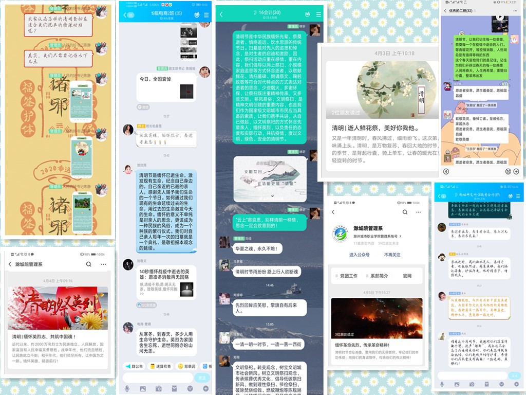 又是一年清明时,新冠肺炎让今年的清明变得特殊又沉重,疫情当前,传统的群众祭扫活动以形成人员聚集,传播疫情,危害人民、社会安全。网上祭扫,实现了从实物祭祀向精神传承的转变。4月1日至4月6日,管理系开展了“战疫情、祭先烈、承遗志”线上清明纪念系列活动,通过家庭追思、追忆遥寄等方式,祭奠故人,缅怀先人。