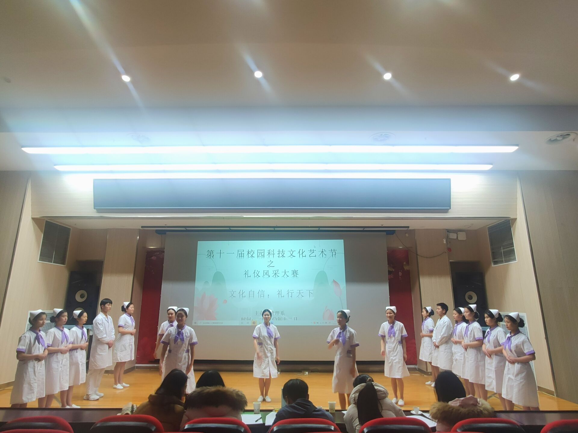 为弘扬中华文明礼仪,传承和发扬优秀文化传统,宣传推广文化礼仪知识,丰富大学校园文化,展现我院学子风采,12月14日管理系成功举办第十一届校园科技文化艺术节之“文化自信,礼仪天下”礼仪风采大赛。比赛评委由管理系刘蓉、艺术系谢添、医学系张和、护理系李亚云和教育系肖炀担任,全校代表共150人出席并观看了比赛。
