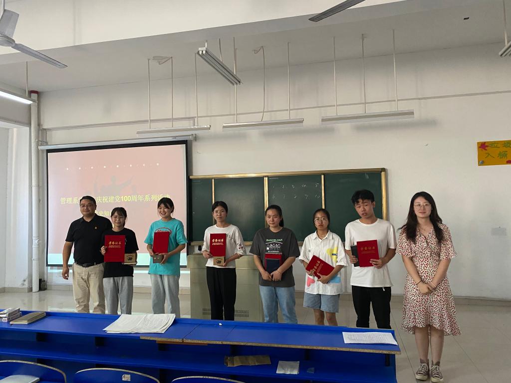 为庆祝中国共产党成立100周年,深入推进党史学习教育,引导广大群众一起学党史、知党情、跟党走。6月22日,管理系党总支开展“永远跟党走,强国伴我行”党史知识竞赛,管理系全体入党积极分子参加竞赛。