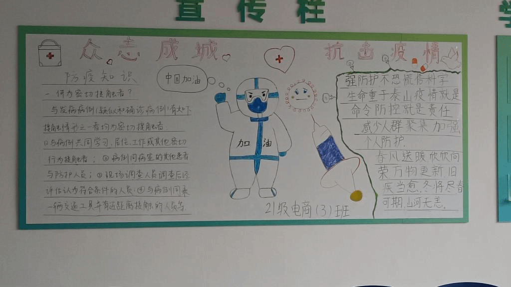 为增强学生的防疫意识宣传防疫知识,3月31日下午管理与信息学院开展“抗击疫情”主题板报评比活动