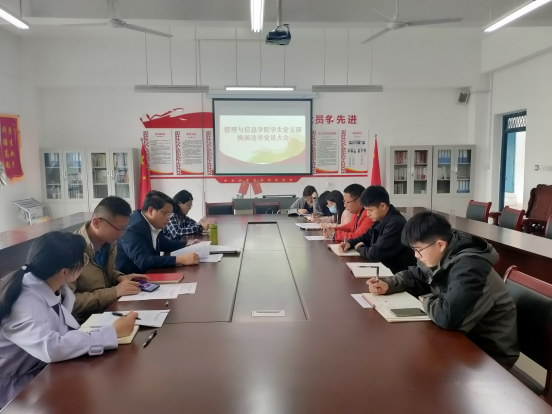 为进一步加强基层党组织建设,充分发挥党支部的战斗堡垒作用,根据《中国共产党章程》《中国共产党基层组织选举工作条例》等有关规定,2023年5月24下午管理与信息学院学生党支部召开换届选举党员会议,会议由党支部书记陈兴旺主持全体党员参加会议。