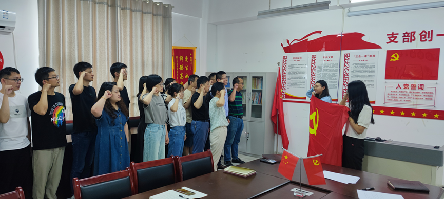 全体党员共同观看了2023年高校党组织示范微党课《铸魂增智育新人 正风促干书新篇》。观看党课结束,秦书记带领全体党员面向党旗,重温入党誓词。庄重神圣的誓词,铿锵有力的宣誓声,强烈震撼着每一位党员,铮铮誓言,体现了全体党员同志对中国共产党的无限忠诚与热爱,坚守了入党初心和使命。