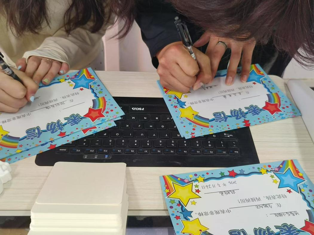 在石膏娃娃DIY环节,同学们耐心地给石膏娃娃上色,一个个原本单调的石膏模型在他们的巧手中变得栩栩如生,充满了生命力。水晶手链DIY区则是女生们的最爱,大家挑选着自己喜欢的水晶珠子,亲手编织出属于自己的美丽手链。
