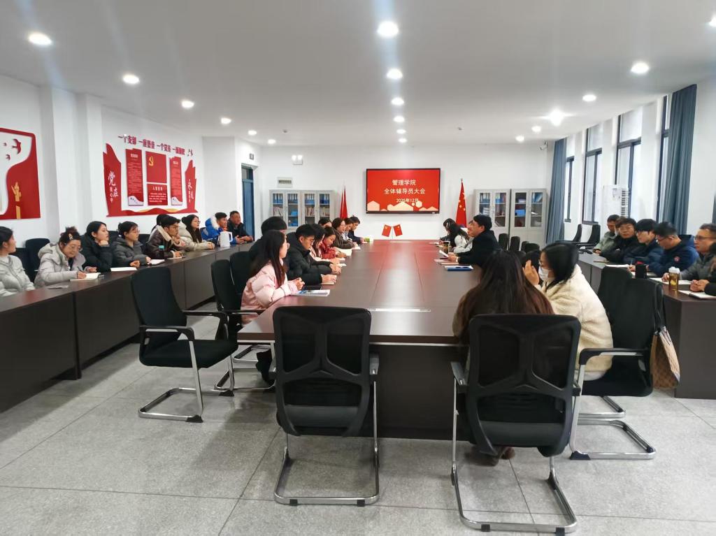 为进一步推进学风建设,加强学生安全教育,落实学校学管会议精神,12月24日下午管理学院在润德楼301会议室组织召开全体辅导员工作会议。会议由管理学院党总支书记陈兴旺主持,全体辅导员参加。