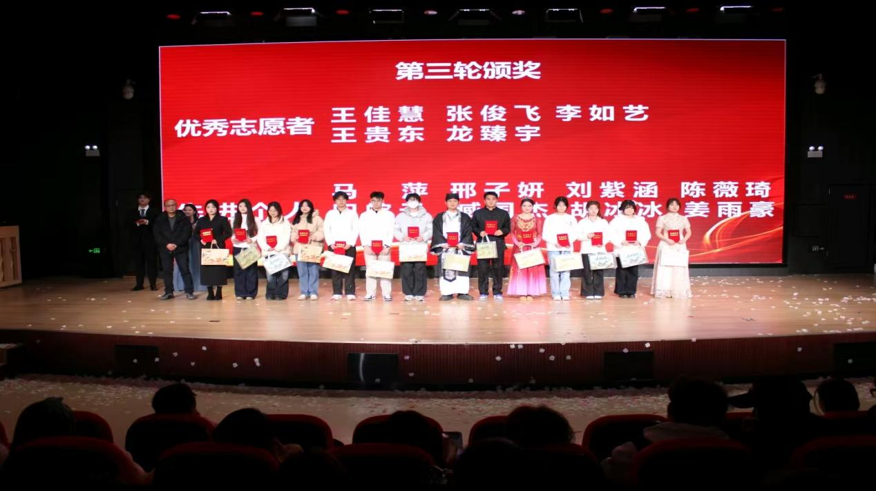 舞台上,演员们全情投入、尽情绽放;舞台下,观众们热情高涨、掌声雷动。晚会穿插多轮表彰环节,先后为运动会优秀运动员代表、校级及省级比赛获奖优秀学生代表、优秀志愿者先进个人颁奖,以此表彰先进、树立榜样,激励全院学子在新的一年里奋勇争先。抽奖环节的设置,更是让现场惊喜不断,欢乐氛围持续升温。最终,晚会在舞蹈《盛世欢歌》的欢快节奏中落下帷幕。